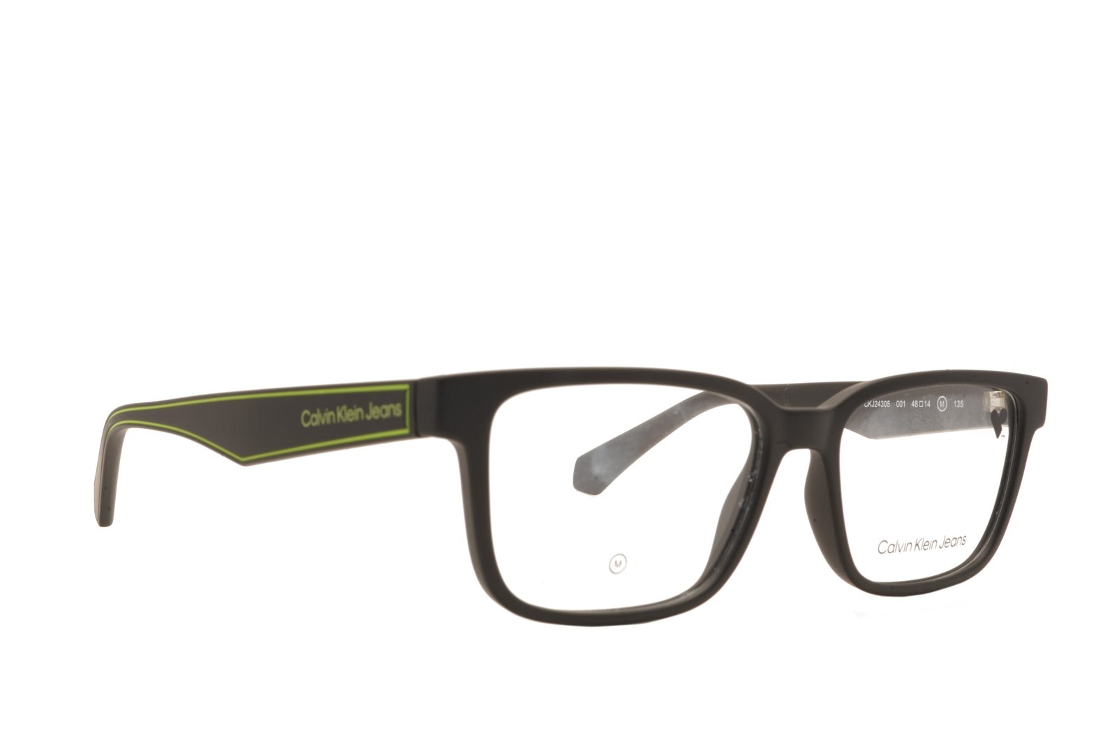 The CKJ24305 001 48 showcases a compact black frame with a refined rounded-square design. Lightweight construction offers easy, comfortable wear. Its clean styling aligns perfectly with Calvin Klein’s iconic minimalism. Subtle logo elements enhance the premium appearance. Ideal for smaller face profiles seeking understated elegance.